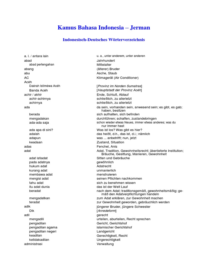 Kamus Bahasa Indonesia Indonesisch Deutsches Worterverzeichnis Moam Info