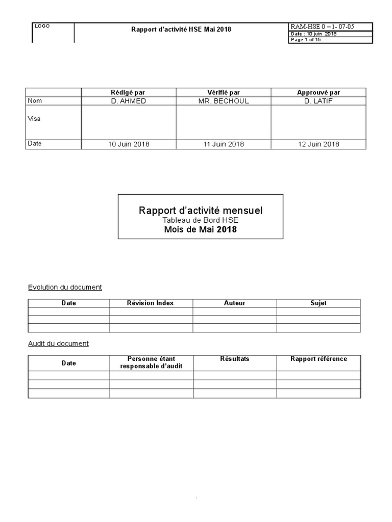 Modele Rapport D Activite Mensuel Hse Entreprise Internationale Livres Et Documents Gratuits Genie Civil Btp Vrd Arch Topo Hse